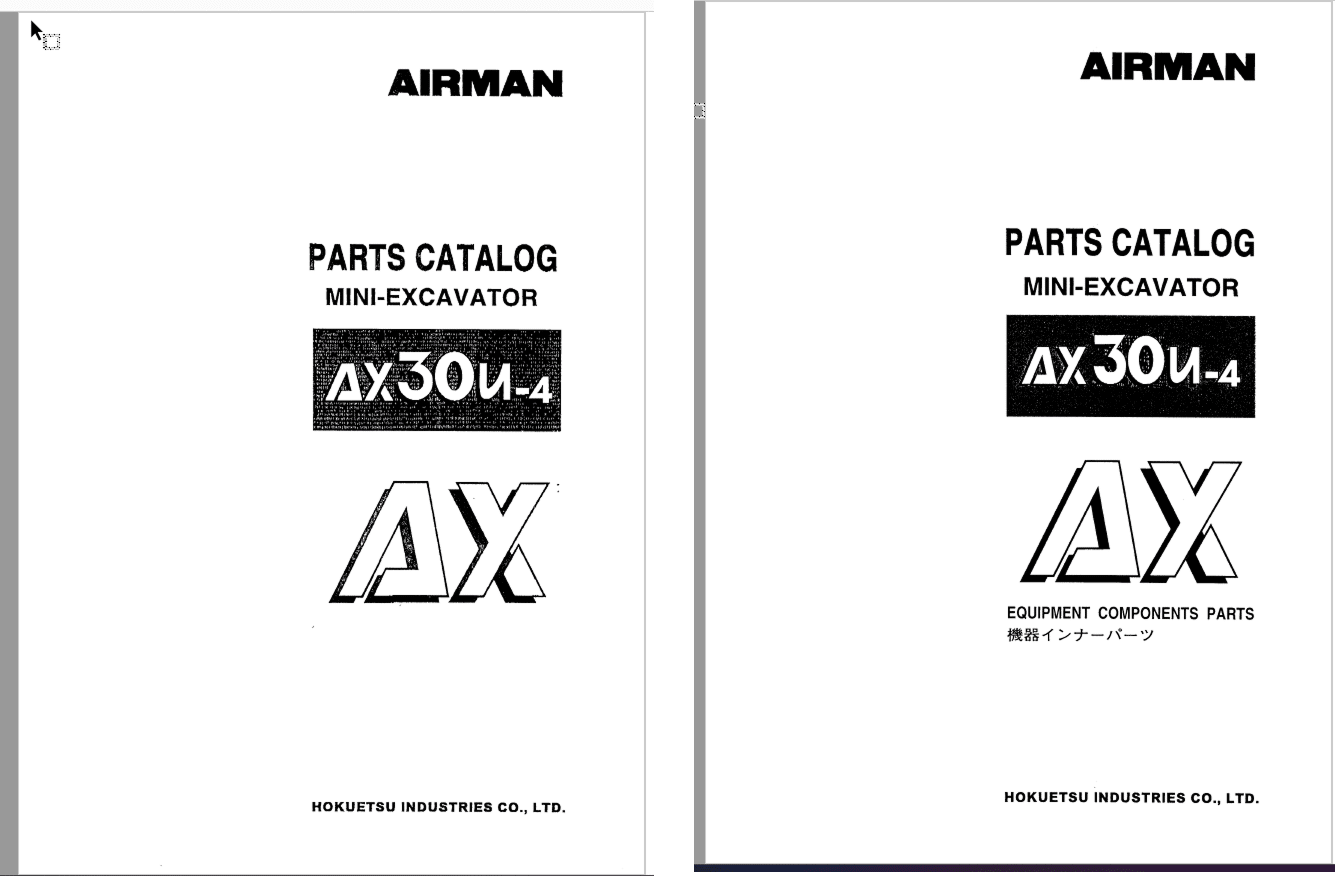 Airman AX30u-4 Mini Excavator Parts and Inner Index: