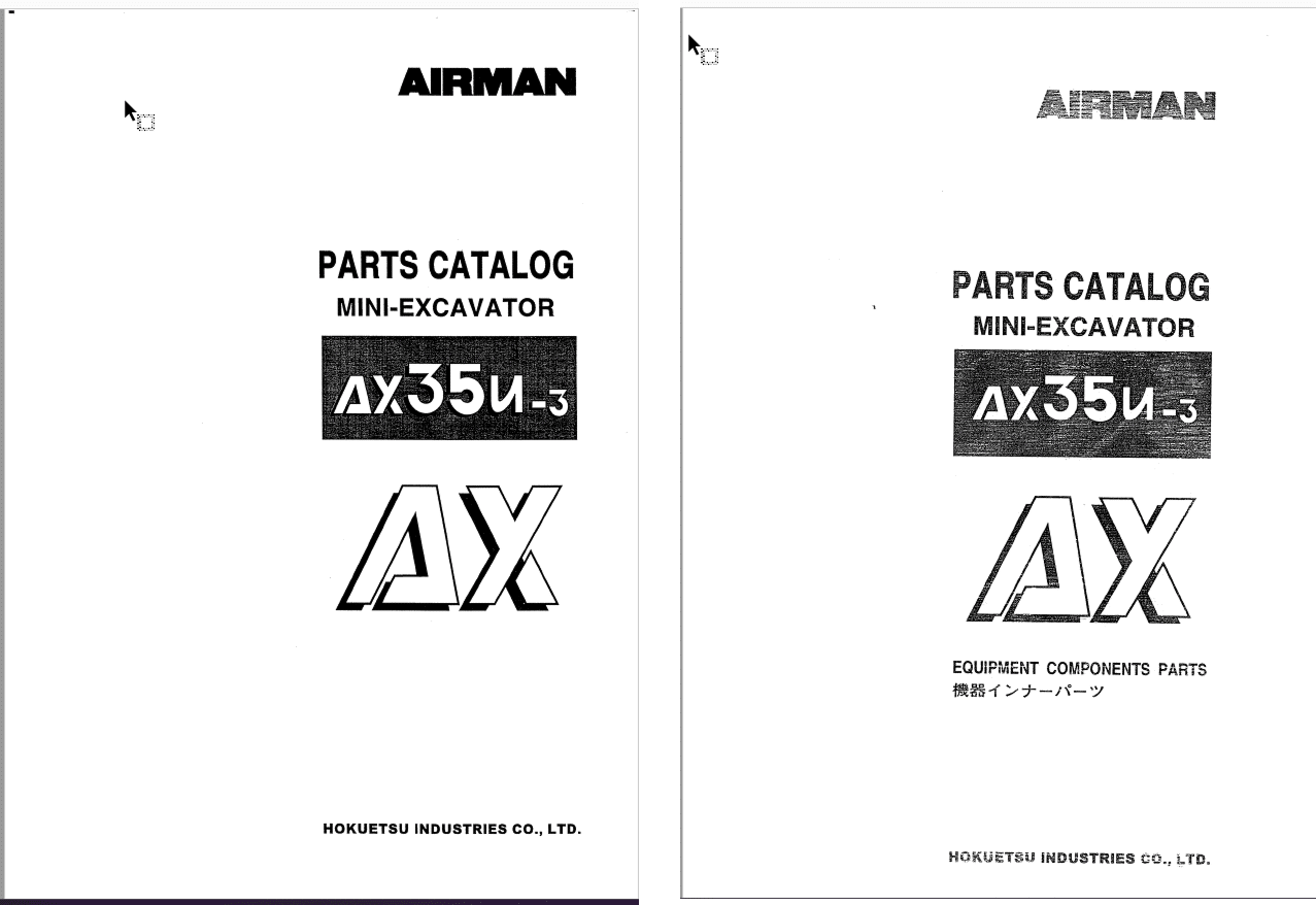 Airman AX35u-3 Mini Excavator Parts and Inner Parts Catalog