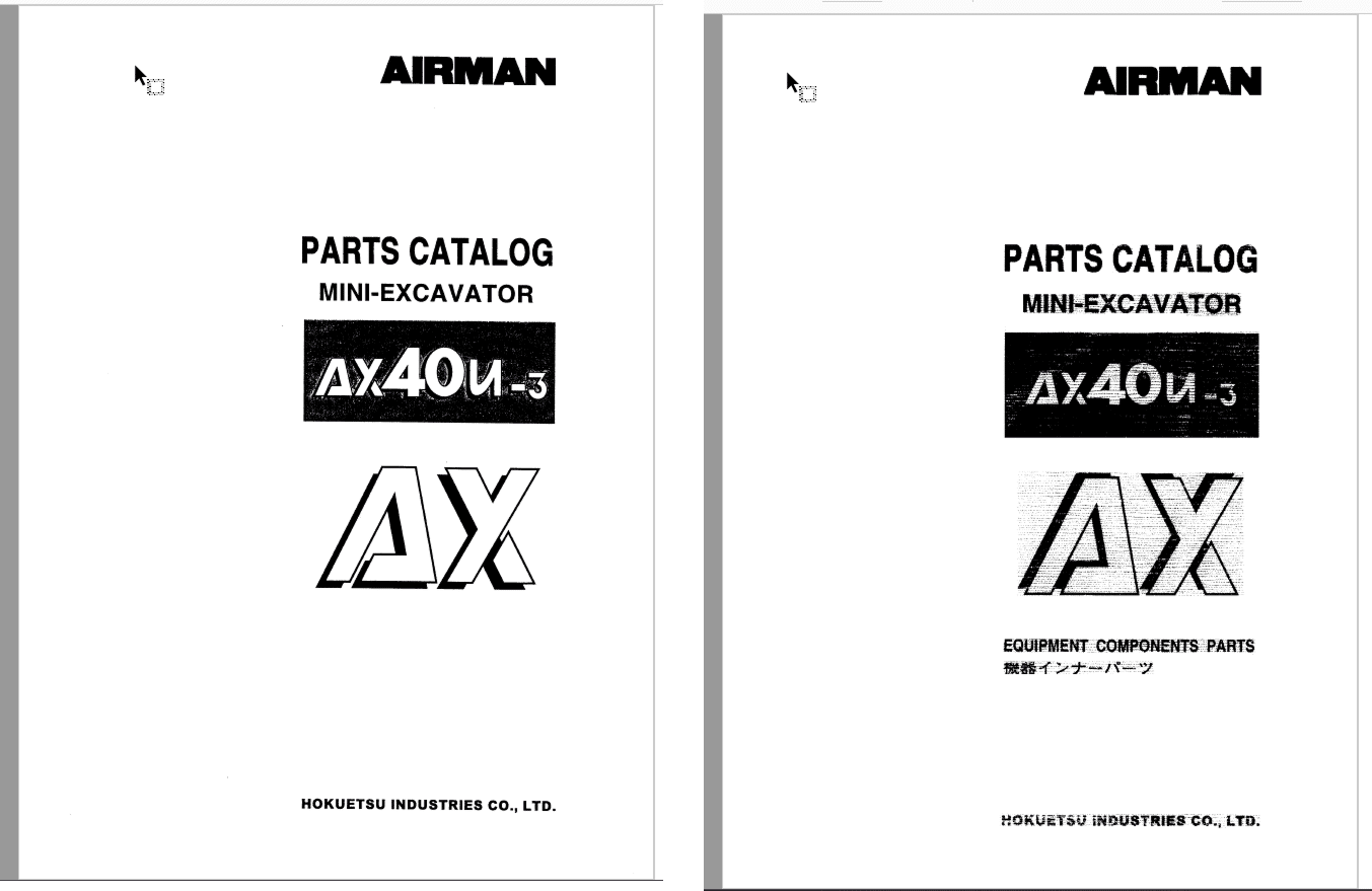 Airman AX40u-3 Mini Excavator Parts and Inner Parts Catalog