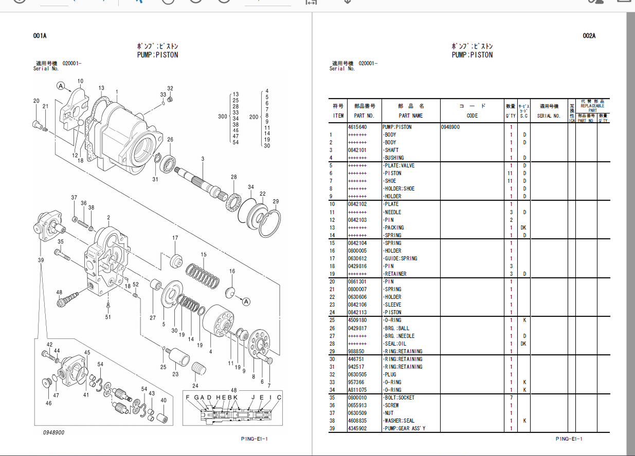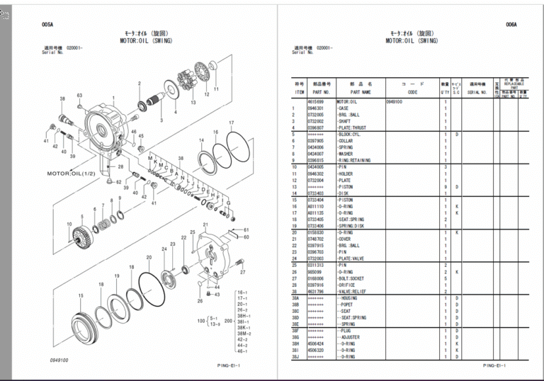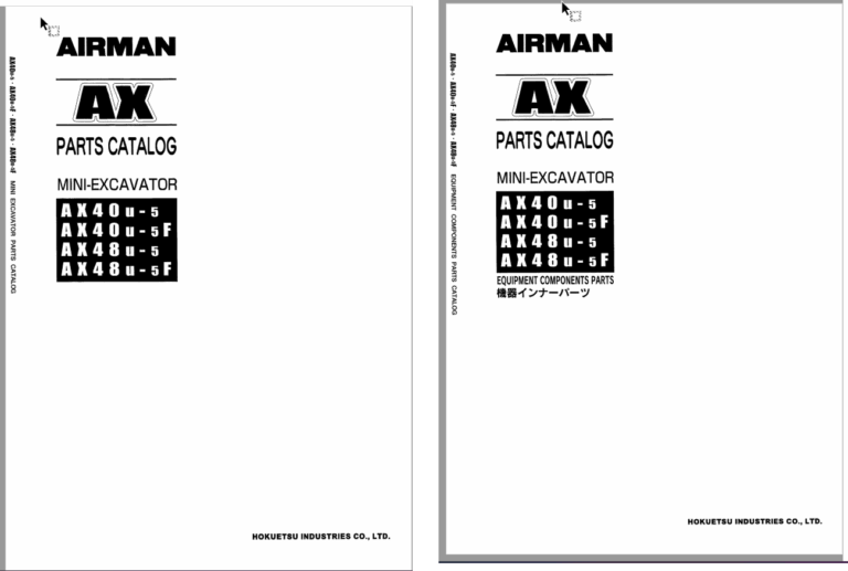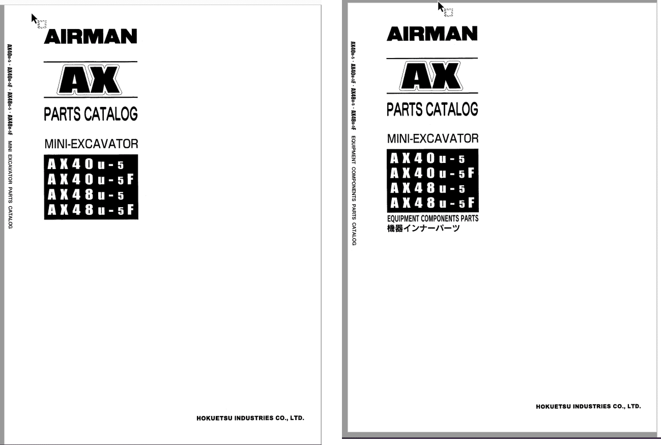 Airman AX40u-5, AX40u-5F, AX48u-5, AX48u-5F Mini Excavator Parts and Inner Parts Catalog