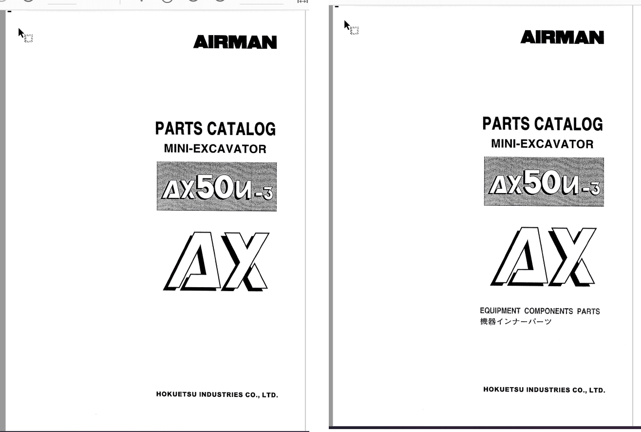 Airman AX50u-3 Mini Excavator Parts and Inner Index: