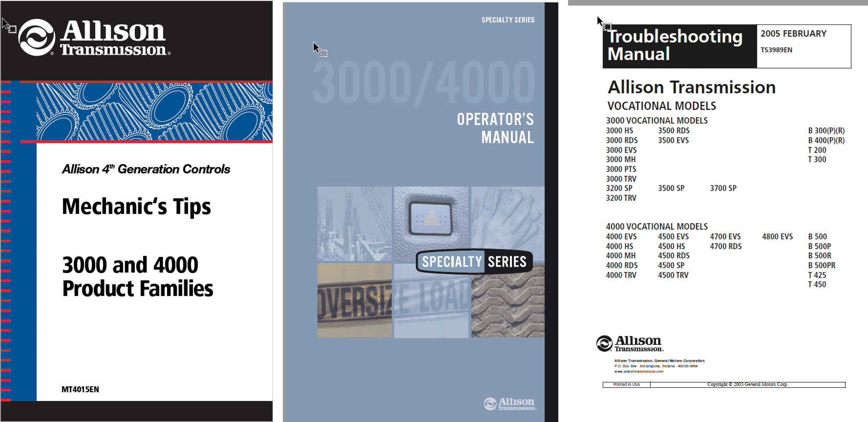 Allison 3000, 4000 Generation Technical Training and Operators Manual