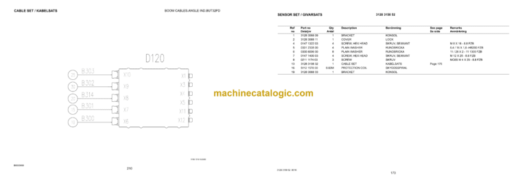 – – – CABLE SET – – KABELSATS 211 BOOM CABLES.ANGLE IND.BUT32PD