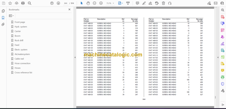 Hydr. system Carrier Boom Rock drill Feed Electr. system Air/watersystem Cable reel Hose connection Hoses Cross reference list