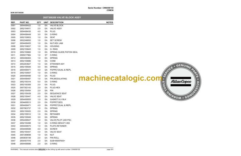Atlas Copco CDM30 Drill Rig Parts Catalog