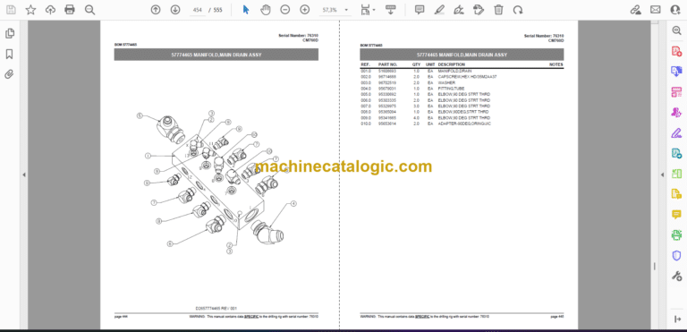 57774465 MANIFOLD,MAIN DRAIN ASSY . . . . . . . . . . . . . . . . . . . . . . . . . . . . . . . . . . . . . . . . . . . . . . . . .444