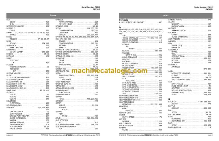 WARNING: This manual contains data SPECIFIC to the drilling rig with serial number: 76310 page iii