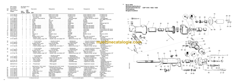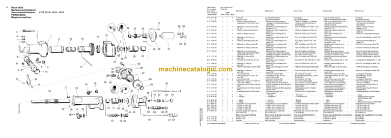 Atlas Copco COP 1019-1019HF COP 1022-1022HF COP 1025 Hydraulic Rock Drill Parts Catalog