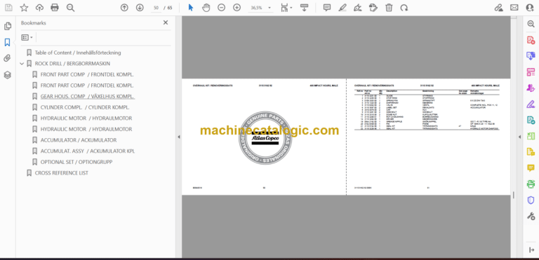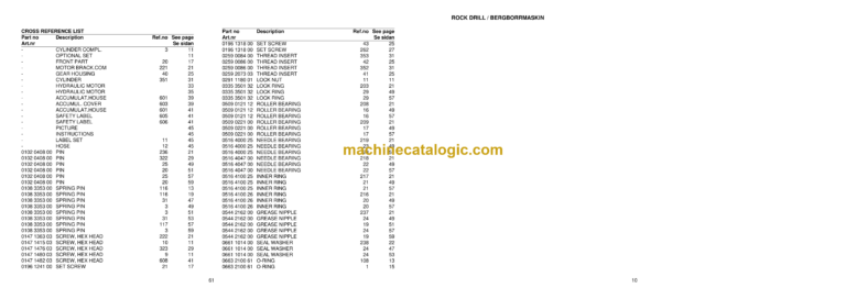 Atlas Copco COP 1132 Hydraulic Rock Drill Parts Catalog
