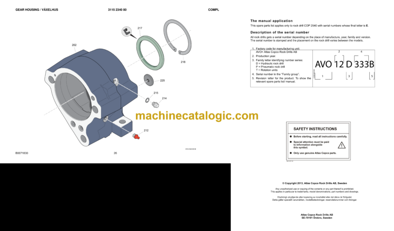 Atlas Copco COP 2540 Version E Hydraulic Rock Drill Parts Catalog