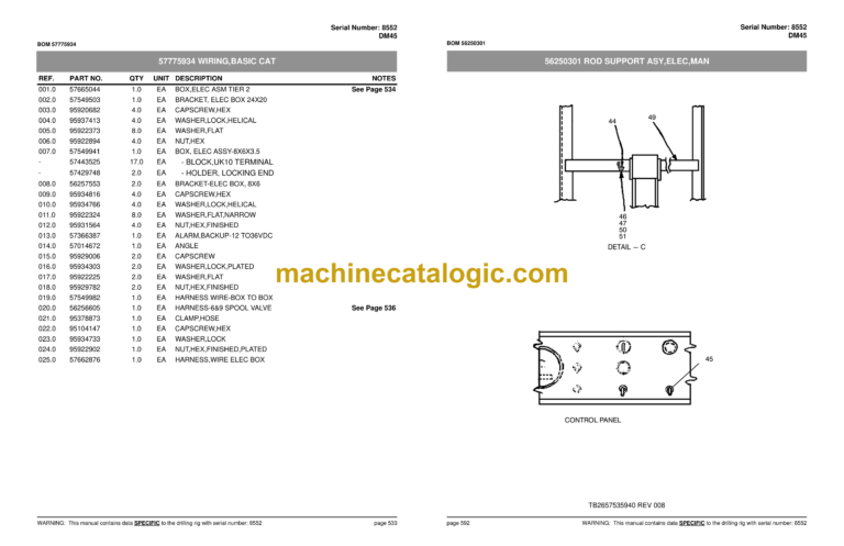 WARNING: This manual contains data SPECIFIC to the drilling rig with serial number: 8552 page v
