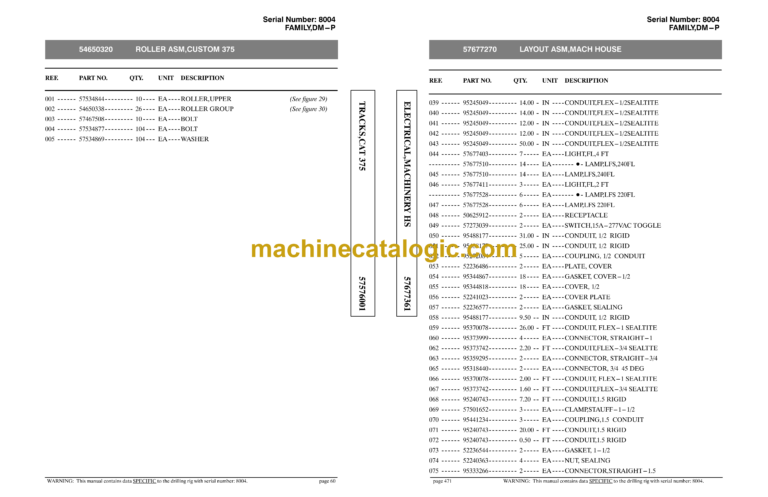 WARNING: This manual contains data SPECIFIC to the drilling rig with serial number: 8004. page v