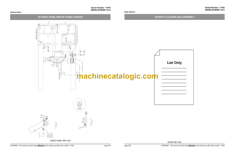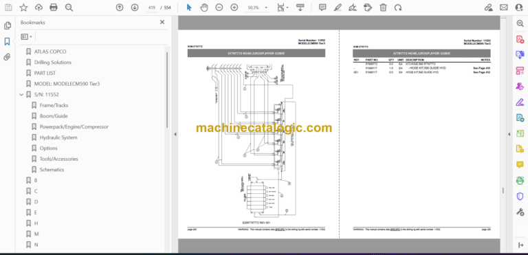 Frame/Tracks Boom/Guide Powerpack/Engine/Compressor Hydraulic System Options Tools/Accessories Schematics