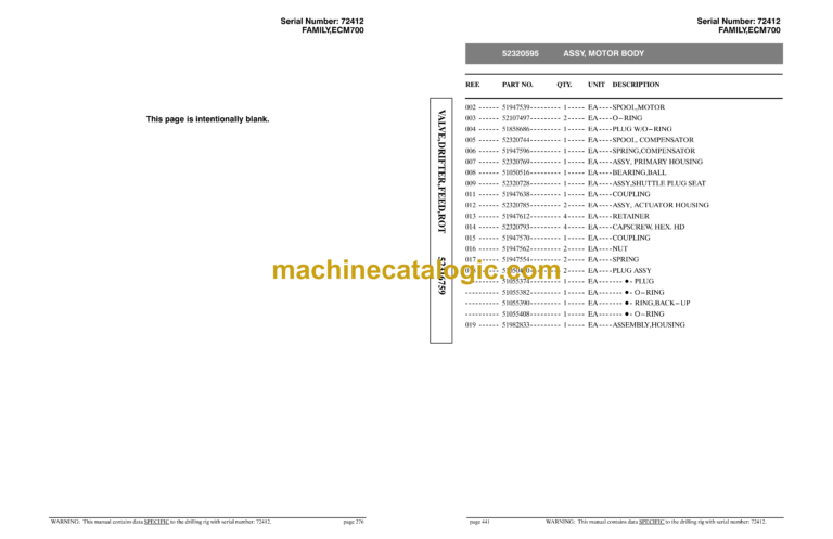 WARNING: This manual contains data SPECIFIC to the drilling rig with serial number: 72412. page v