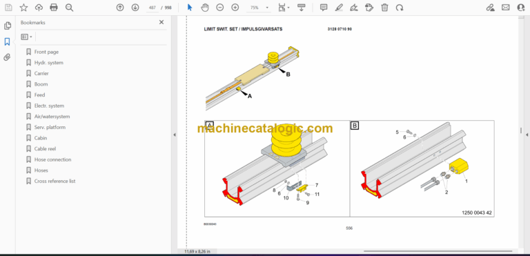 Front page Hydr. system Carrier Boom Feed Electr. system Air/watersystem Serv. platform Cabin Cable reel Hose connection Hoses Cross reference list