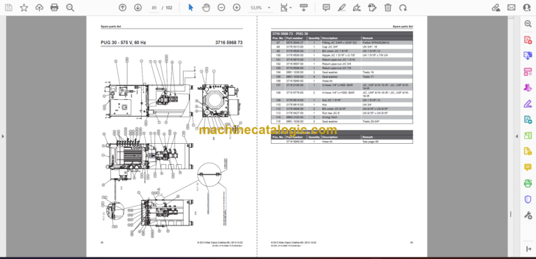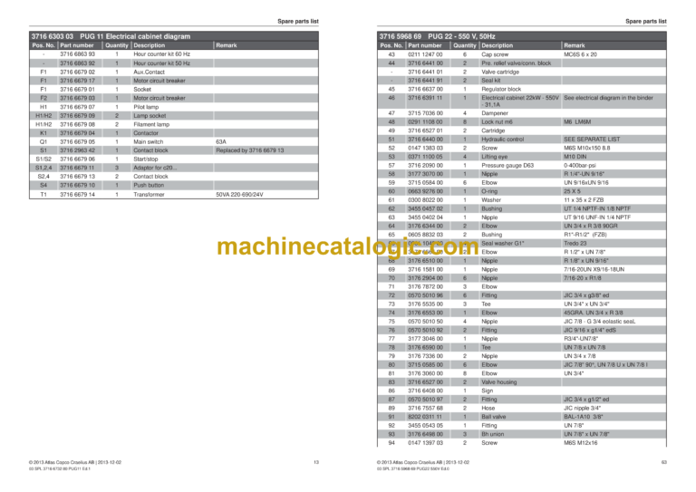 Atlas Copco PUG11, PUG15, PUG22, PUG30 Power Unit Grouting Parts Catalog