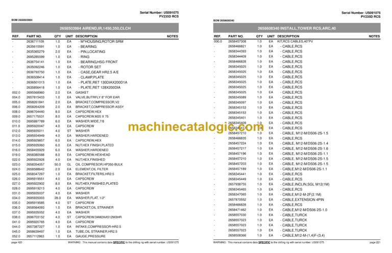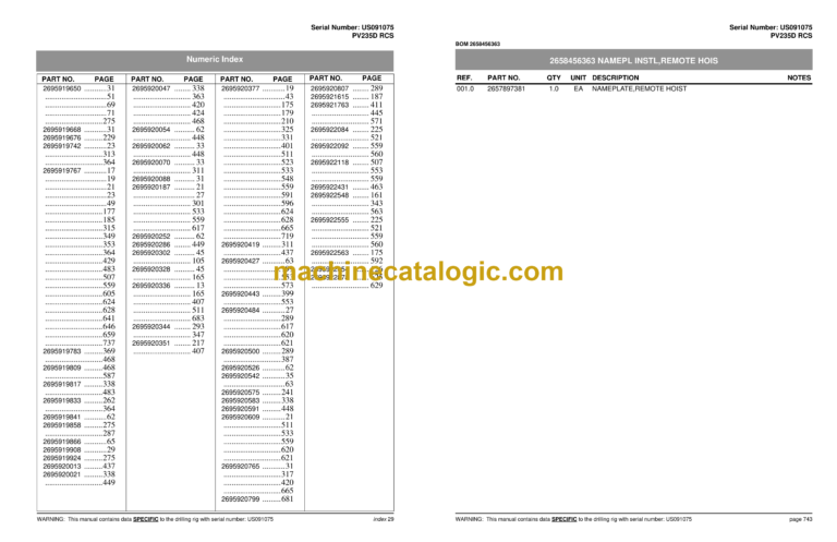 WARNING: This manual contains data SPECIFIC to the drilling rig with serial number: US091075 page vii