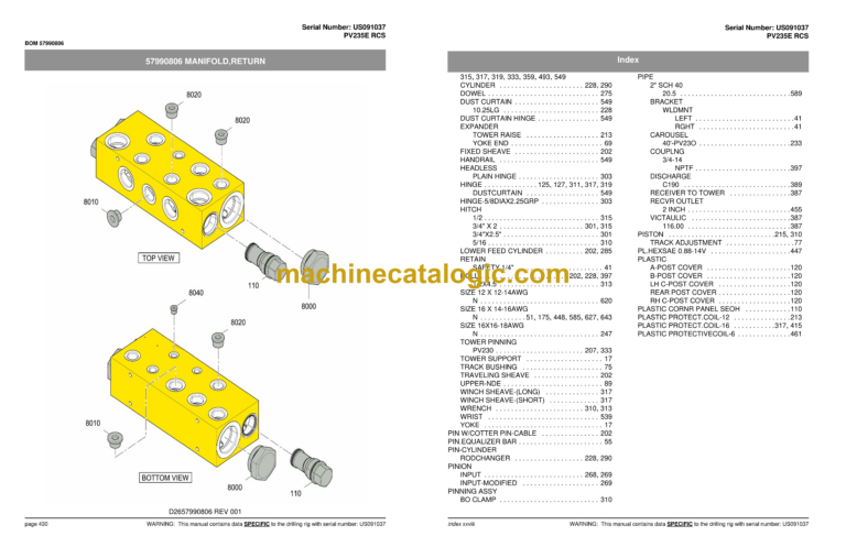 WARNING: This manual contains data SPECIFIC to the drilling rig with serial number: US091037 page vii