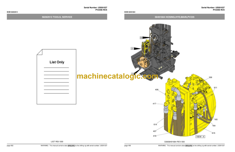 WARNING: This manual contains data SPECIFIC to the drilling rig with serial number: US091037 page iii