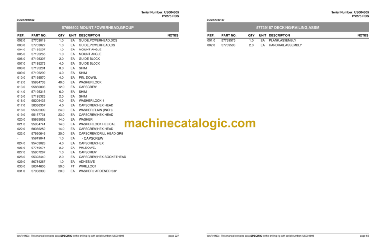 WARNING: This manual contains data SPECIFIC to the drilling rig with serial number: US004605 page v