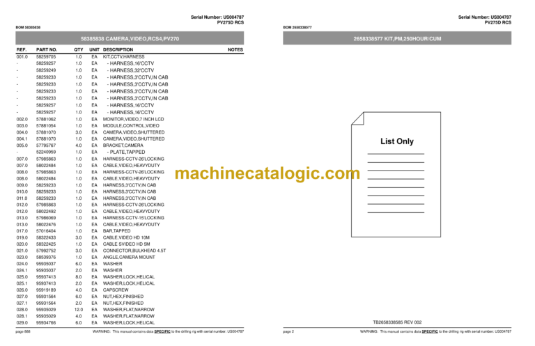 WARNING: This manual contains data SPECIFIC to the drilling rig with serial number: US004787 page ix