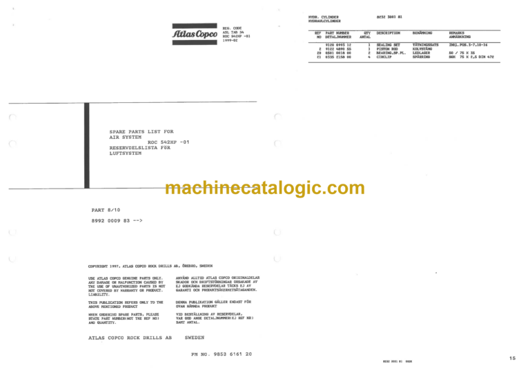Atlas Copco ROC 542HP-01 Drilling Rig Parts Catalog