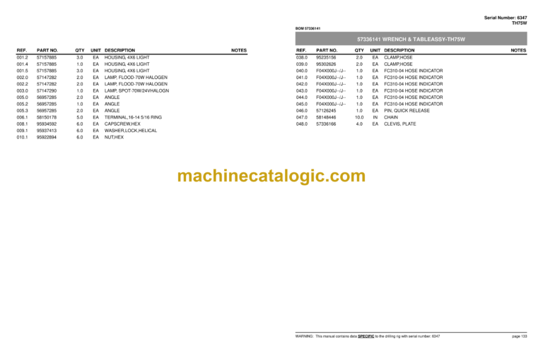 WARNING: This manual contains data SPECIFIC to the drilling rig with serial number: 6347 page v