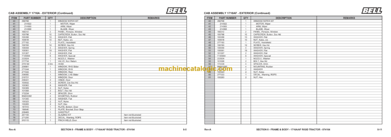 Bell 1716A-AF Rigid Tractor Parts Manual (874164)