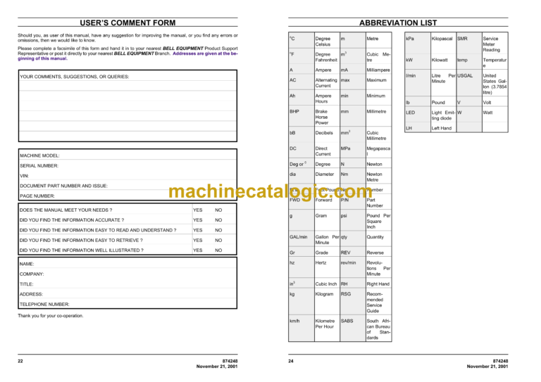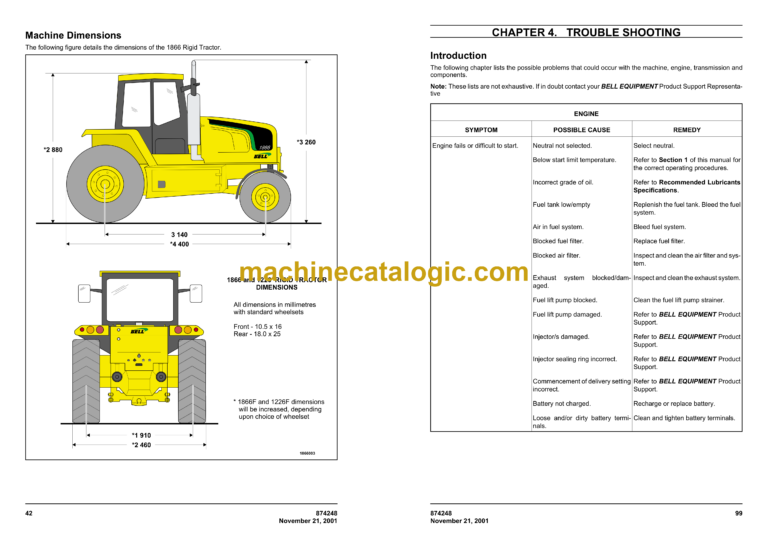 Bell 1866, 1866F, 1226 & 1226F Rigid Tractor Operator’s and Maintenance Manual (874248)