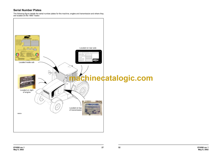 Bell 1866 & 1866F, 1226 & 1226F Rigid Tractor Index: