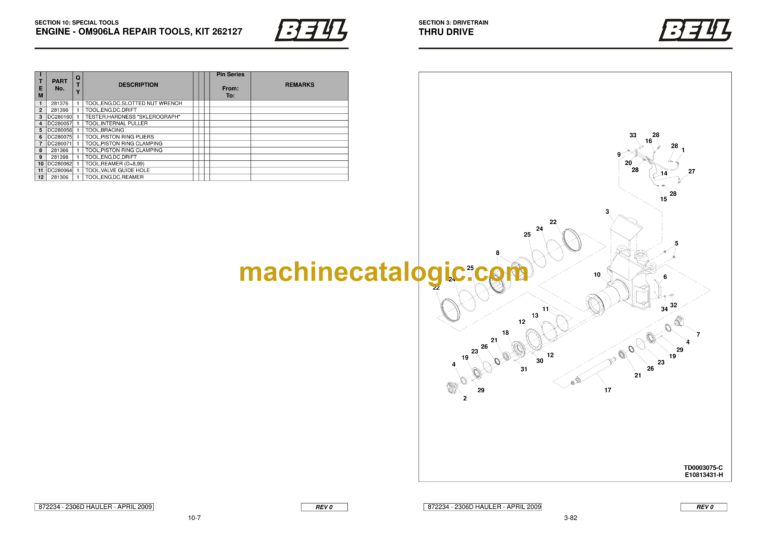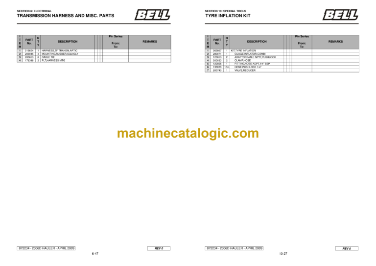 Bell 2306D Artic Hauler Mk VI – B823D60 Parts Manual (872234)