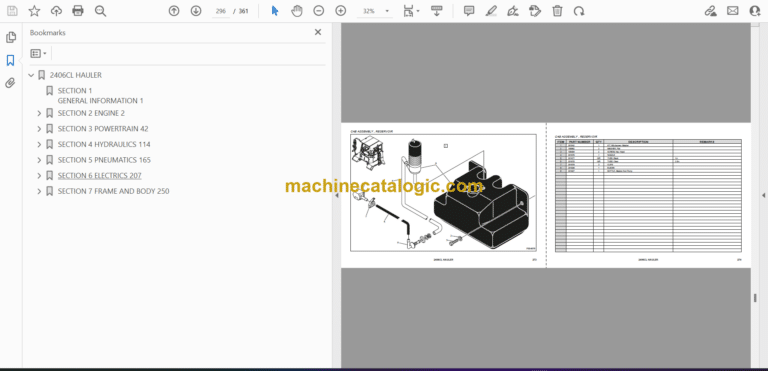 SECTION 1. GENERAL INFORAMTION SECTION 2. ENGINE SECTION 3. POWERTRAIN SECTION 4. HYDRAULICS SECTION 5. PNEUMATICS SECTION 6. ELECTRICS SECTION 7. FRAME AND BODY