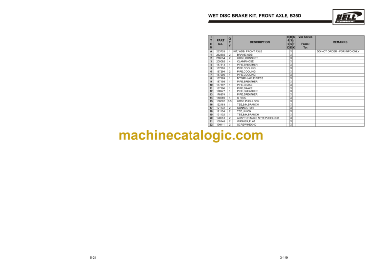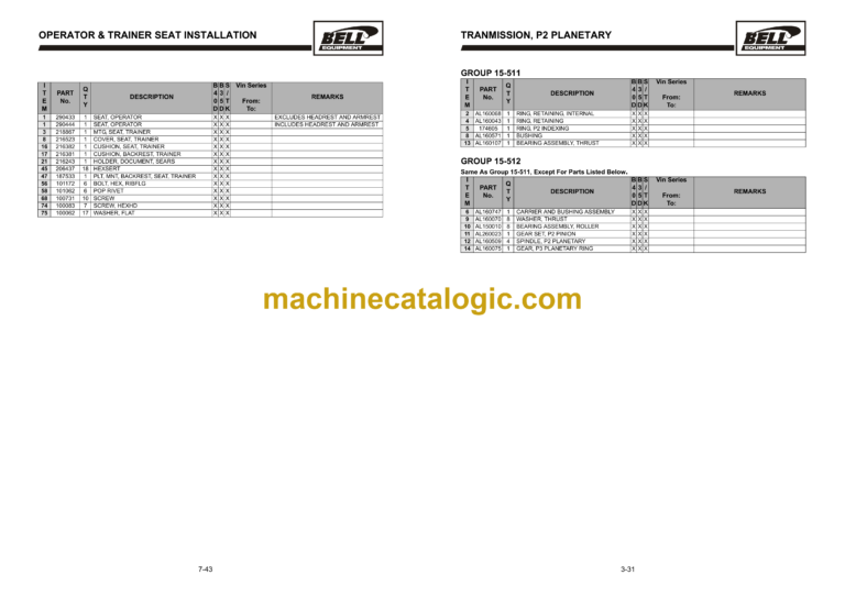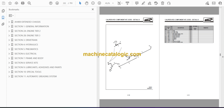 Bell AH400 Extended Chassis Articulated Dump Truck Parts Manual (872181)