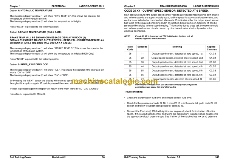 CODE 25 XX – OUTPUT SPEED SENSOR, DETECTED AT O SPEED.
