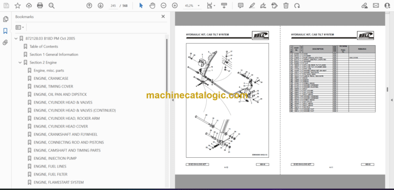 Bell B18D 6X6 & 6X4 ADT Articulated Dump Truck Parts Manual (872128)