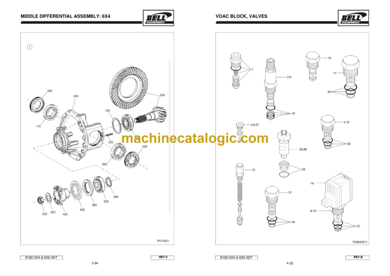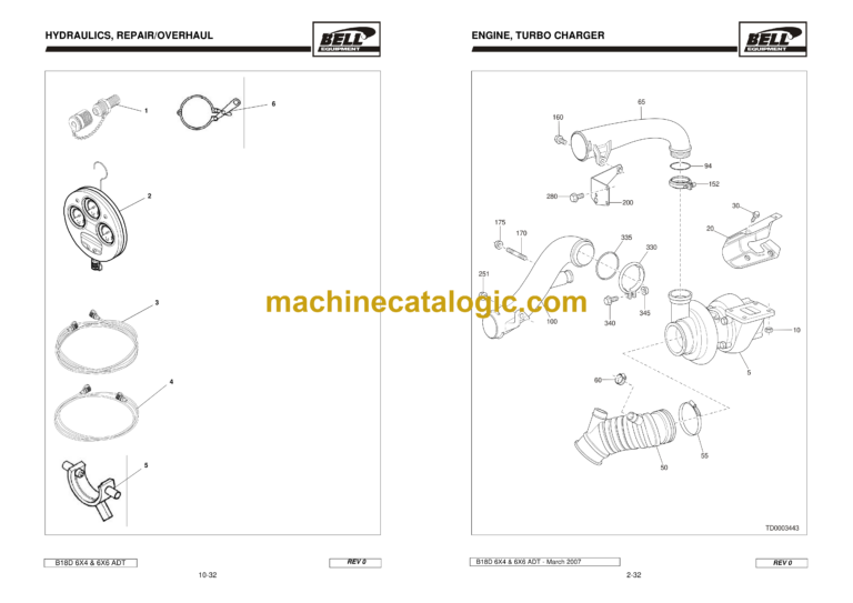 Bell B18D 6X6 & 6X4 ADT Articulated Dump Truck Index: