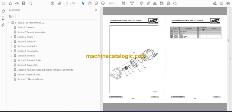 Bell B18D 6X6 & 6X4 ADT G2 Articulated Dump Truck Parts Manual (872138)