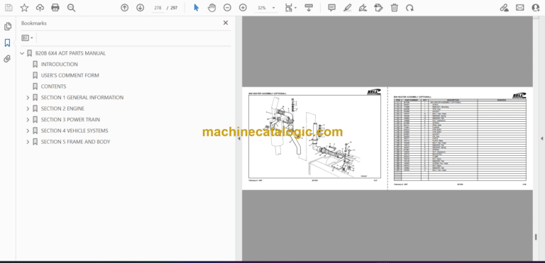 Bell B20B 6X4 ADT Articulated Dump Truck Parts Manual (870170, December 1997)