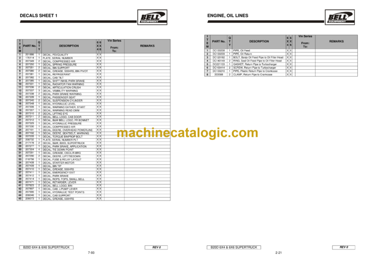 Bell B20D 6X6 & 6X4 ADT Supertruck Index: