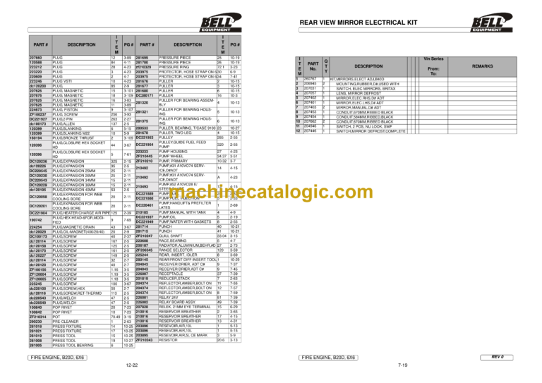 Bell B20D, 6X6 Fire Engine Parts Manual (872117)