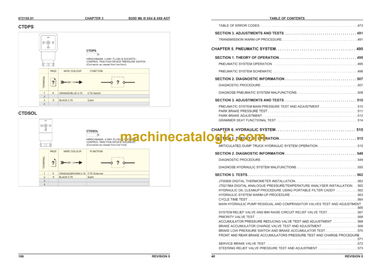 Bell B20D Mk III 6X4 & 6X6 Articulated Dump Truck Index:
