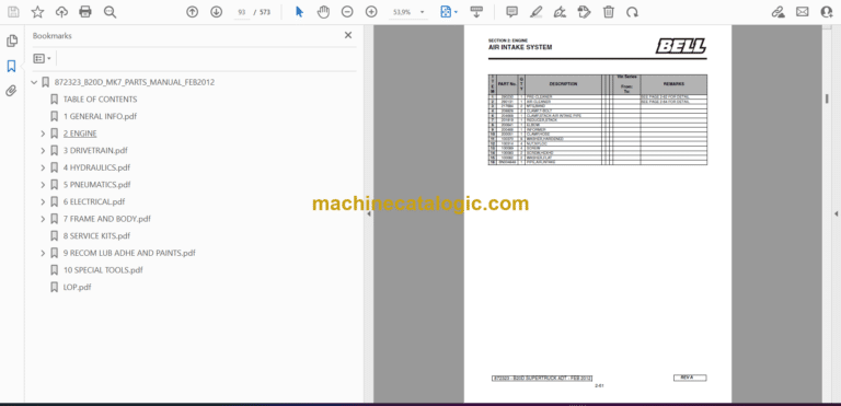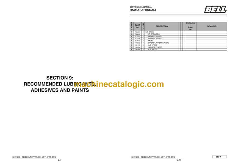 Bell B20D Supertruck MK7 EA821D70 Parts Manual (872323)