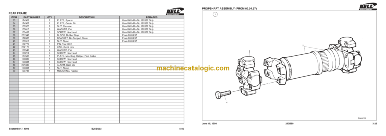 Bell B25B 6X6 Mk II ADT Local Articulated Dump Truck Parts Manual (870159 September 1998)