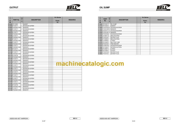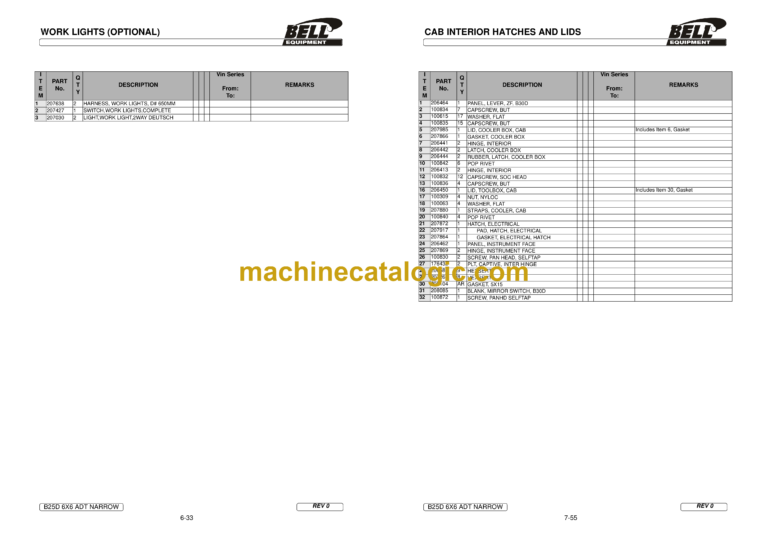 Bell B25D 6X6 ADT Narrow Articulated Dump Truck Parts Manual (872094 – July 2003)