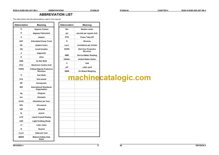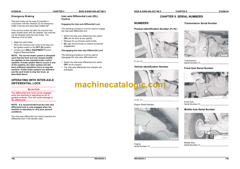Bell B25D & B30D 6X6 ADT Mk II Articulated Dump Truck Index: