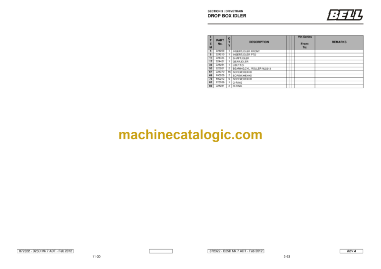 Bell B25D Mk 7 ADT – A825D70 Articulated Dump Truck Index: