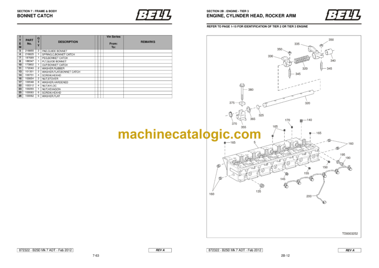 Bell B25D Mk 7 ADT – A825D70 Articulated Dump Truck Parts Manual (872322)