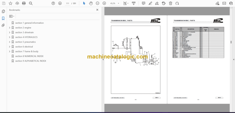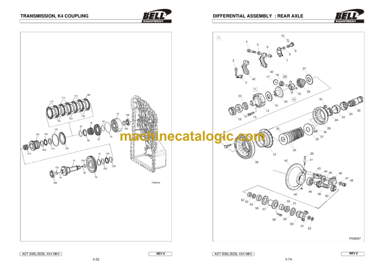 Bell B25L 4X4 MKII, 906, 210, SAHR, B30L 4X4 MKII, 906, 210, SAHR Articulated Dump Truck Parts Manual (872119)