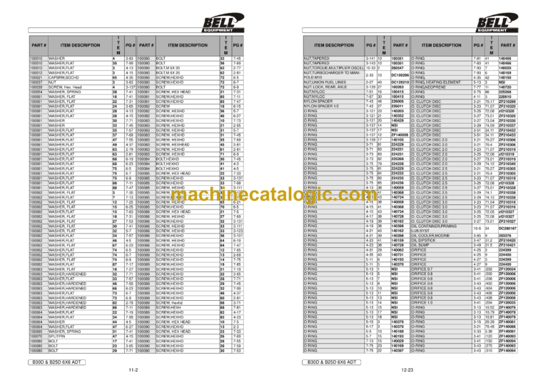 Bell B30D 6X6 ADT, B25D 6X6 ADT Articulated Dump Truck Index: