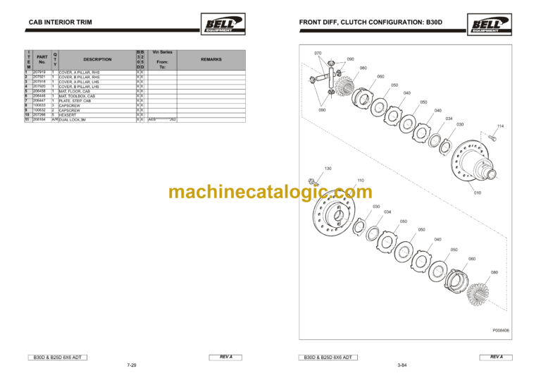 Bell B30D 6X6 ADT, B25D 6X6 ADT Articulated Dump Truck Parts Manual (872085, 2005 May)